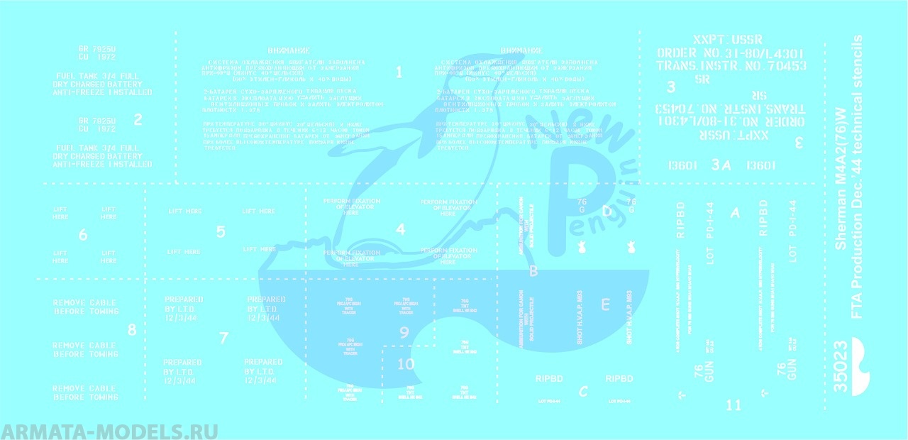 35023P M4A2 (76)W Шерман РККА (ленд-лиз) Техническая маркировка (M4A2 (76)W Red Army Sherman (Lend-Lease) Technical Stencils) New penguin в Оренбурге, купить в интернет-магазине, цены, фото