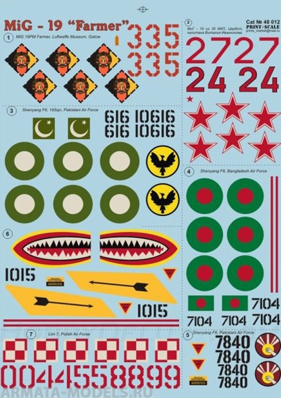 PS48-012 Декаль МиГ-19 Farmer Print Scale в Оренбурге, купить в интернет-магазине, цены, фото