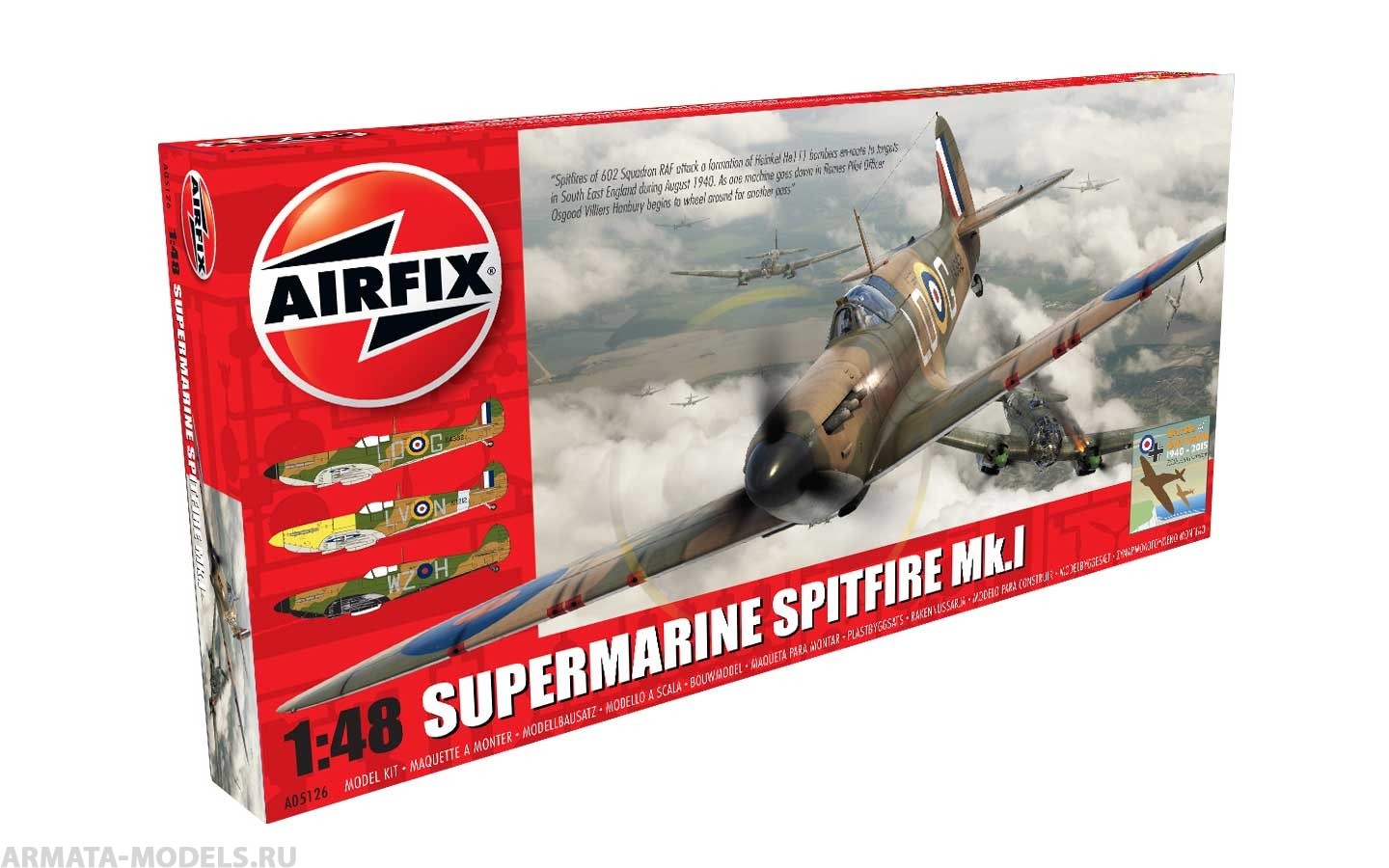 Сборная модель Британского истребителя Supermarine Spitfire Mk.I от компании Airfix выполнена в высоком качестве, детализирована и максимально повторяет облик своего прототипа в масштабе 1:48. Эта модель понравится моделистам, которые уже освоили основы и продолжают совершенствовать мастерство. Модель состоит из 149 деталей, которые отлично стыкуются между собой, делаю сборку простым и увлекательным процессом. Supermarine Spitfire - пожалуй самый известный и красивый самолет, когда-либо поднимавшийся в небо. Spitfire Mk.I - первая серийная версия самолета. Он был во многом идентичен прототипу 1936 года. Совершив свой первый полет в мае 1938 года Spitfire завоевал признание Королевских ВВС и стал поступать в боевые части в августе-сентябре того же года. Благодаря не менее выдающемуся двигателю Rolls Royce Merlin V12, Spitfire был способен развивать скорость выше 360 миль в час и обладал исключительной маневренностью. Эта модель «Спитфайра» стала основным противником Messerschmitt Bf.109Е во время Битвы за Британию. Несмотря на то, что большую часть истребительного флота составляли менее совершенные Hawker Hurricane Mk.I, именно Spitfire Mk.I вошёл в историю как спаситель Великобритании.