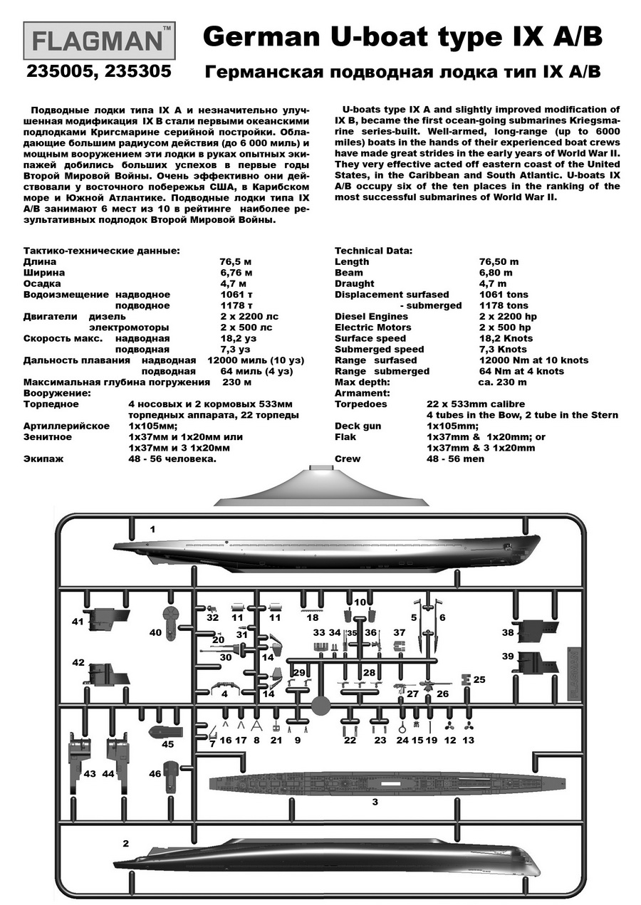 235305F Германская подводная лодка тип IX A/B Profi Set Флагман в Оренбурге, купить в интернет-магазине, цены, фото