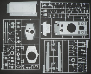 Набор деталей из пластмассы для сборки одной модели танка.
