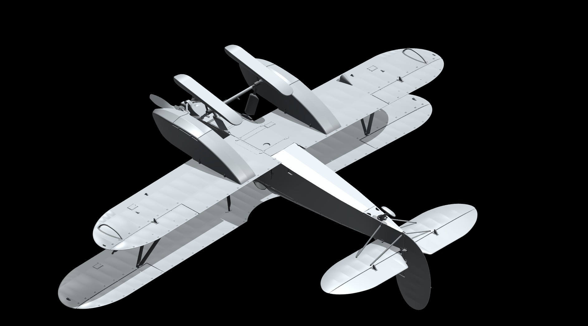 Детализированный двигатель, проработанный выхлоп, вращающийся винт.